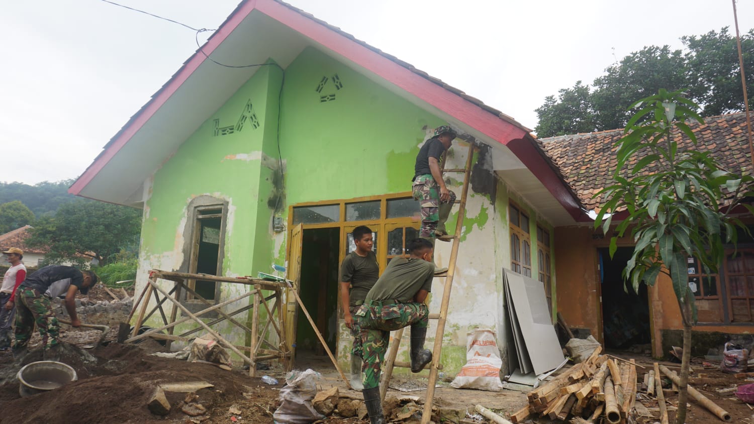 Di tengah menjalankan ibadah puasa, personel Satgas TMMD tetap bekerja penuh semangat menyelesaikan proses renovasi rumah agar segera dapat ditempati dengan lebih layak dan nyaman oleh keluarga penerima manfaat.