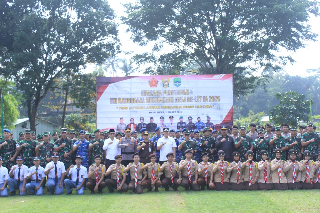 Majalengka || Corongkita.com – Program TNI Manunggal Membangun Desa (TMMD) ke-127 Tahun Anggaran 2026 yang dilaksanakan oleh Kodim 0617/Majalengka resmi ditutup melalui upacara di Lapangan Sepak Bola Desa Sindangwangi, Kecamatan Sindangwangi, Kabupaten Majalengka, Rabu (11/3/2026).