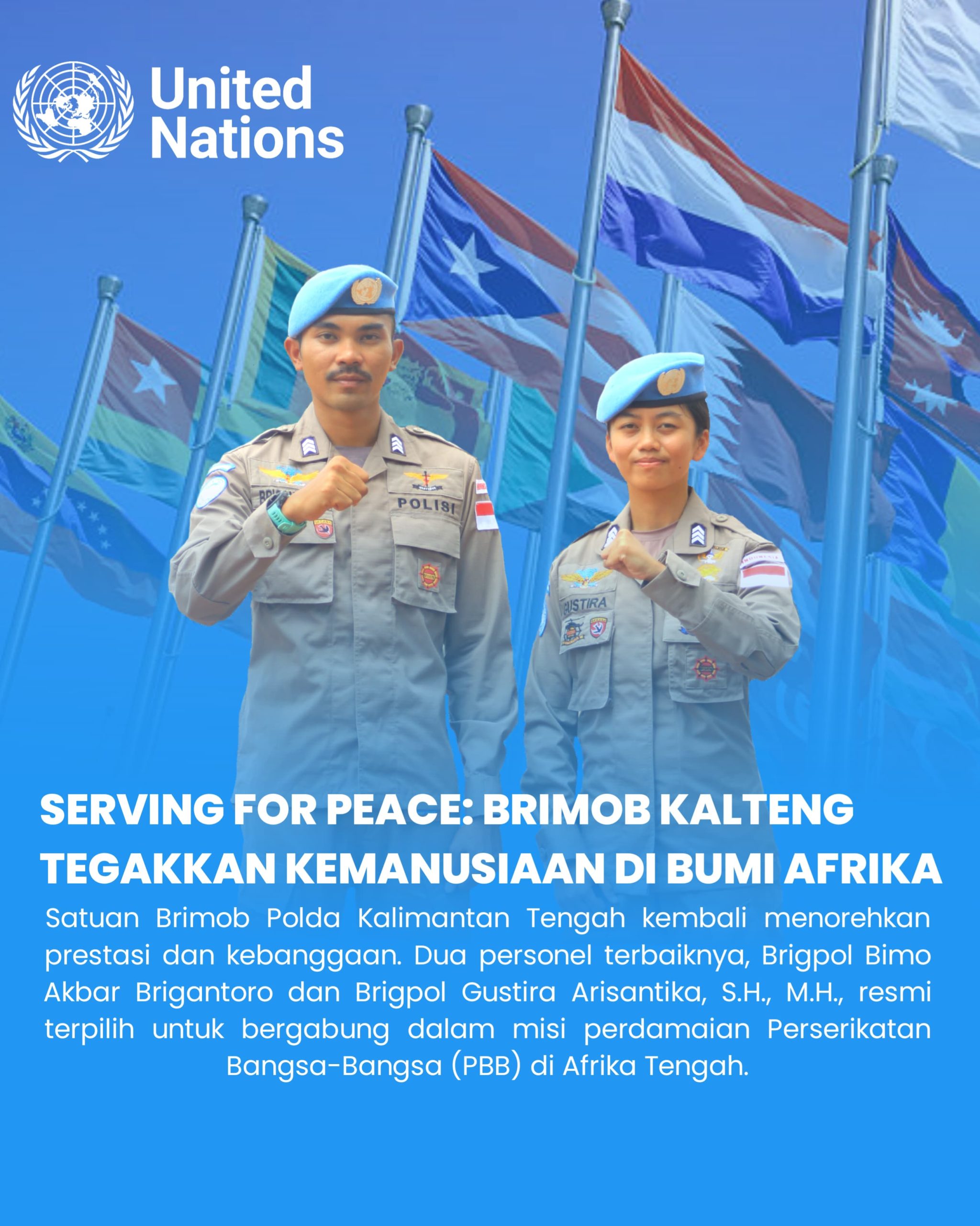 Kalteng || Corongkita.com -Satuan Brimob Polda Kalimantan Tengah kembali menorehkan prestasi dan kebanggaan. Dua personel terbaiknya, Brigpol Bimo Akbar Brigantoro dan Brigpol Gustira Arisantika, S.H., M.H., resmi terpilih untuk bergabung dalam misi perdamaian Perserikatan Bangsa-Bangsa (PBB) di Afrika Tengah.