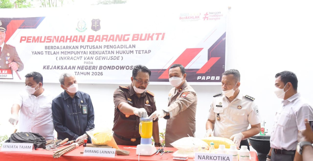 Kegiatan pemusnahan digelar pada Rabu, 8 April 2026, di halaman Kejaksaan Negeri Bondowoso, mulai pukul 10.00 WIB. Barang bukti yang dimusnahkan merupakan hasil penanganan perkara sepanjang Januari hingga April 2026 yang telah memiliki putusan pengadilan inkrah.