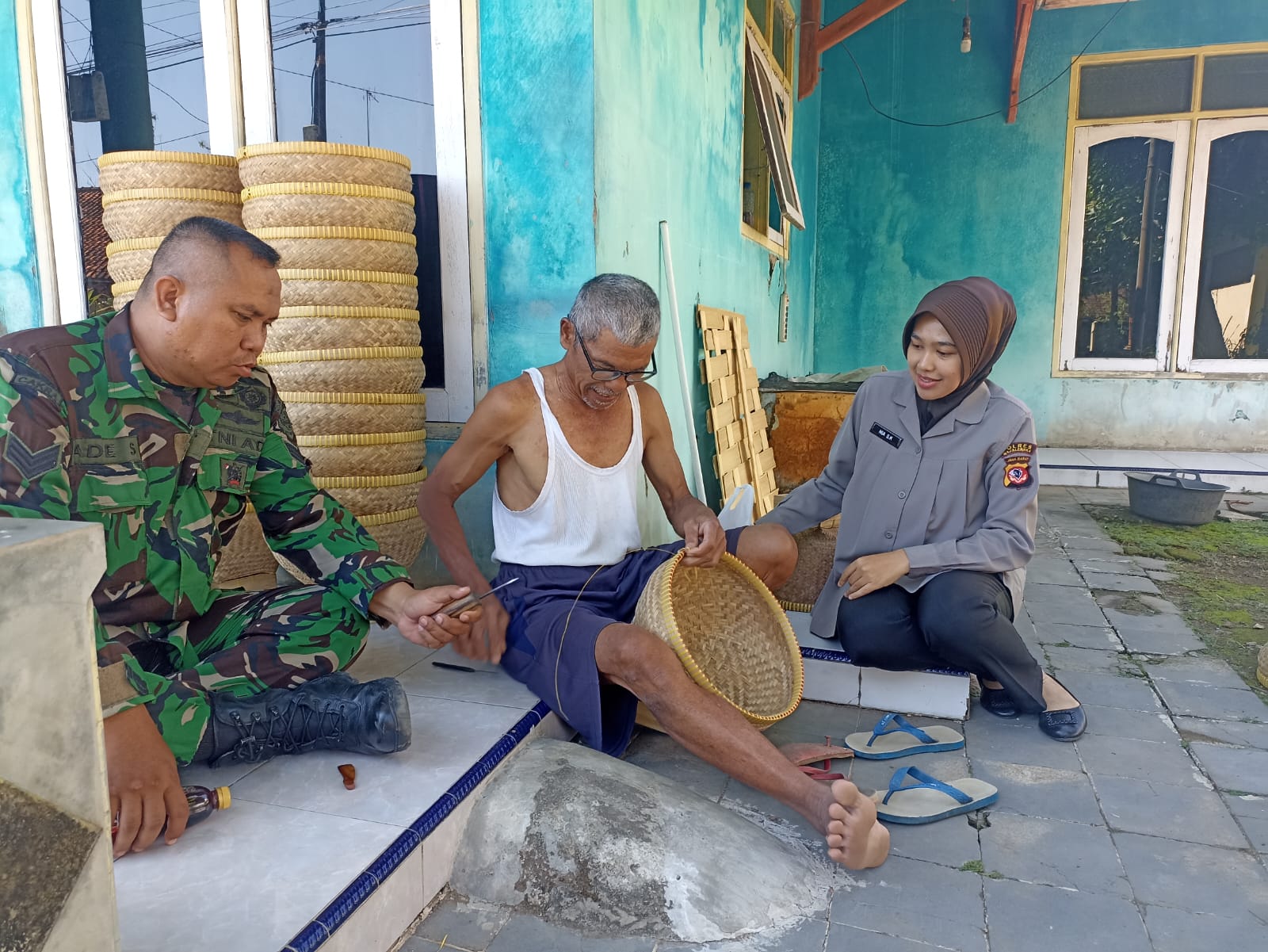 Sinergitas TNI-Polri: Kompak Sambangi Warga Pengrajin Anyaman dan Sampaikan Imbauan Kamtibmas