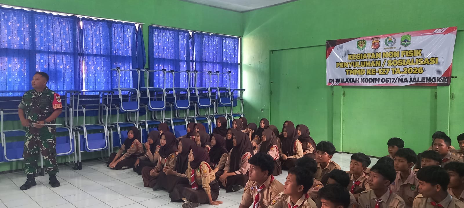 Majalengka || Corongkita.com –  Satgas TNI Manunggal Membangun Desa (TMMD) ke-127 Kodim 0617/Majalengka memberikan pembekalan wawasan kebangsaan kepada siswa-siswi SMP Negeri 1 Sindangwangi, Kecamatan Sindangwangi, Kabupaten Majalengka, Rabu (25/2/2026).