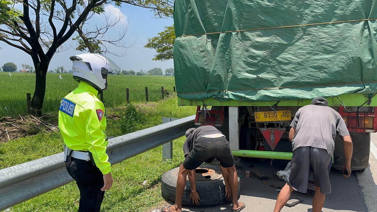 Majalengka || Corongkita.com – Tim Urai Satuan Lalu Lintas Polres Majalengka sigap membantu seorang pengendara truk yang mengalami kendala di ruas Tol Cipali, Selasa (17/3). Truk tersebut terpaksa berhenti di bahu jalan setelah baut roda bagian belakangnya patah, sehingga kendaraan tidak dapat melanjutkan perjalanan dengan aman.