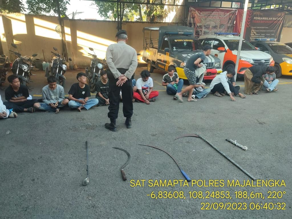 Majalengka || Corongkita.com – Tim Patroli Sat Samapta Polres Majalengka amankan pemuda yang akan melakukan tawuran pada malam hari di GGM Kabupaten Majalengka, Jumat (22/9/2023).