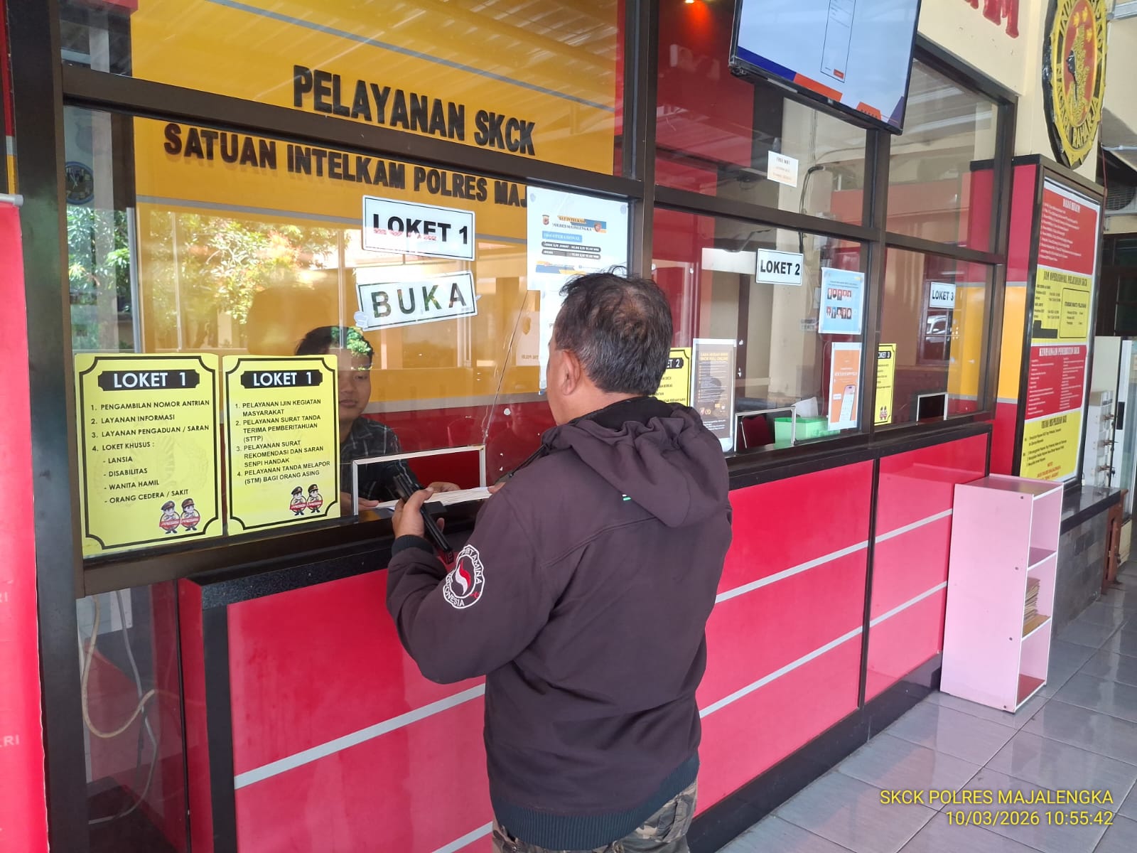 Majalengka || Corongkita.com – Dalam upaya terus memberikan pelayanan terbaik kepada masyarakat, Satuan Intelijen Keamanan (Sat Intelkam) Polres Majalengka mengoptimalkan layanan pembuatan Surat Keterangan Catatan Kepolisian (SKCK). Kegiatan pelayanan ini berlangsung dengan tertib dan mengedepankan sikap humanis di Ruang Pelayanan SKCK Sat Intelkam Polres Majalengka pada Selasa (10/3/2026).