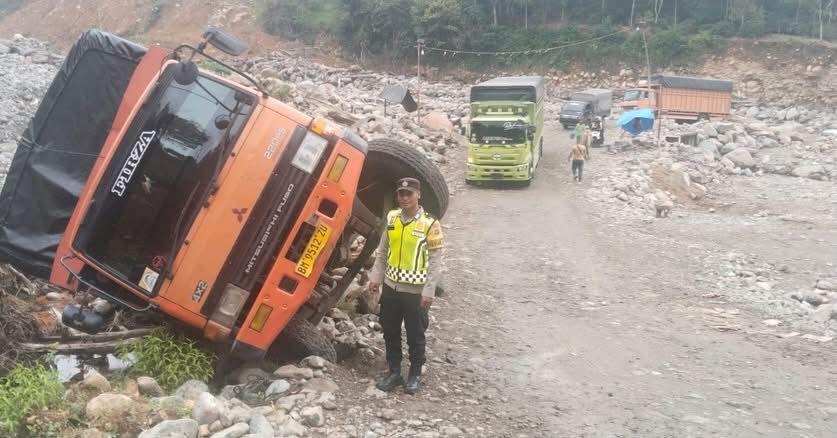 Peristiwa ini menjadi pengingat bagi para pengemudi, khususnya kendaraan berat, agar lebih berhati-hati saat melintasi jalur alternatif dengan kondisi jalan yang rawan licin, terutama di medan menanjak.