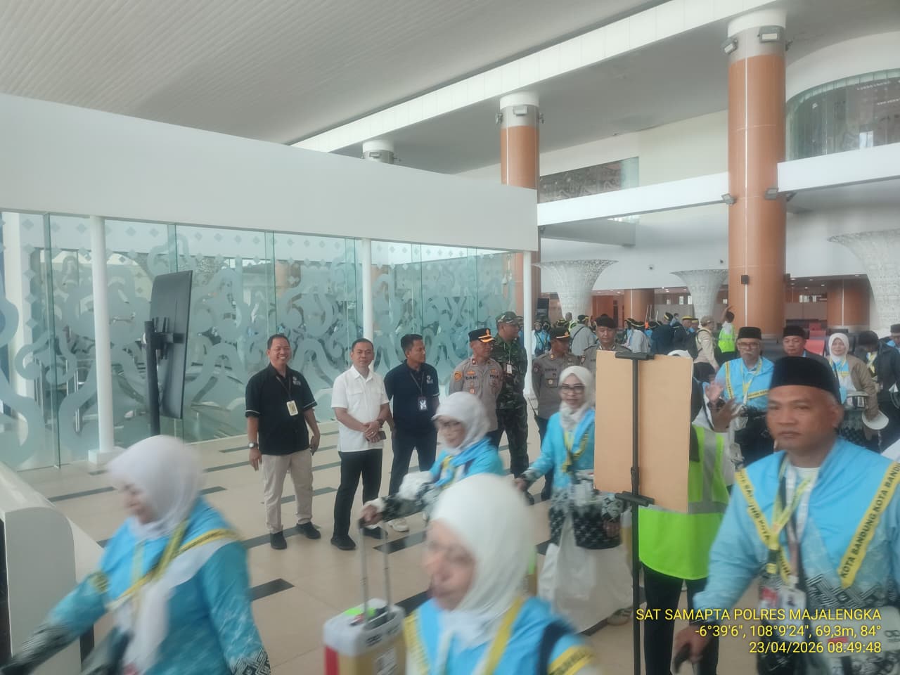Majalengka || Corongkita.com – Polres Majalengka Polda Jabar terus berkomitmen memberikan pelayanan maksimal dalam mendukung kelancaran ibadah haji tahun 1447 H / 2026 M. Pada Kamis pagi (23/4/2026), jajaran kepolisian melaksanakan pengamanan ketat pada prosesi pemberangkatan jemaah haji Kelompok Terbang (Kloter) 2 di Embarkasi Bandara Internasional Jawa Barat (BIJB) Kertajati, Kabupaten Majalengka.