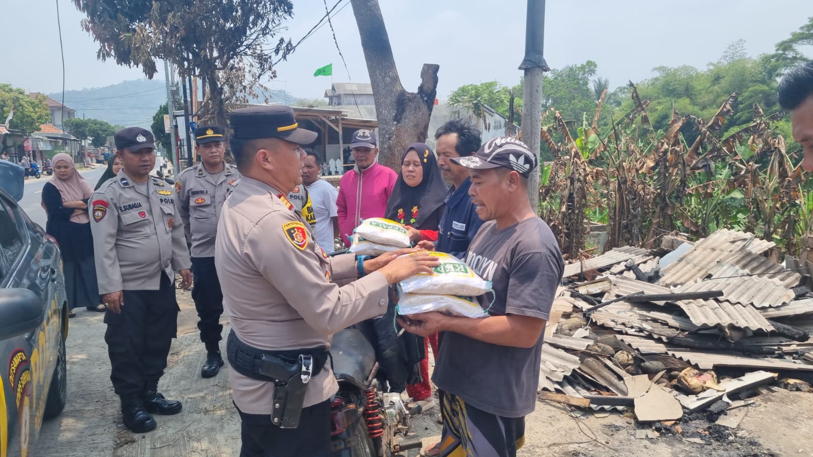 “Mudah-mudahan apa yang kami sumbangkan kepada saudara-saudara kita yang mengalami musibah kebakaran ini sedikit banyaknya dapat mengurangi penderitaannya dan semoga Tuhan melindungi kita semua, serta untuk korban kebakaran diberikan kekuatan dan kesabaran dalam menjalani cobaan tersebut,” ungkap Kapolsek.